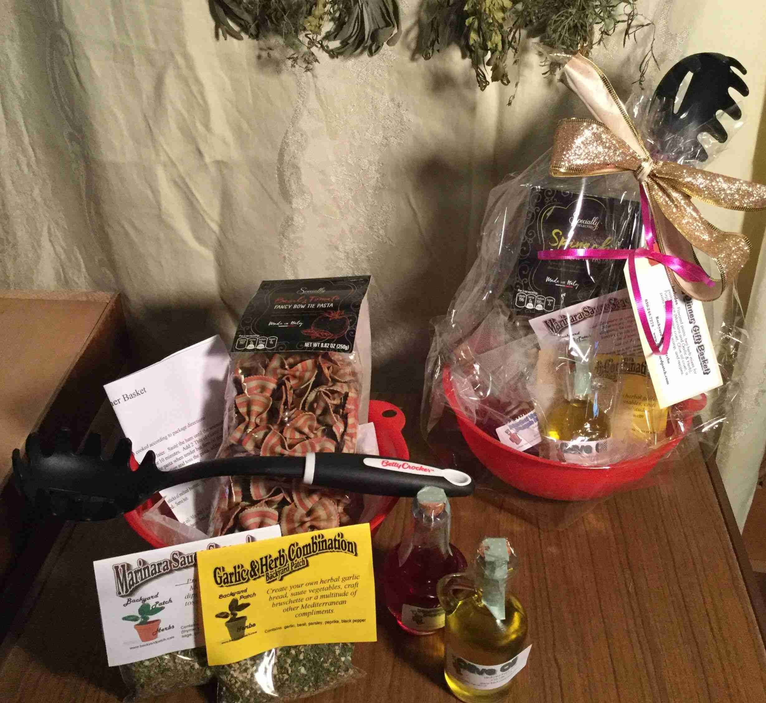 Mini Pasta Dinner in a Basket, seasonings, recipes and ingredients