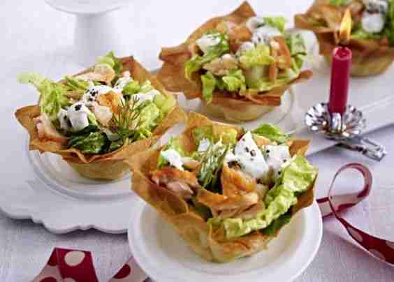 Filokörbchen mit Lachs und Dill-Crème-fraîche Rezept | LECKER