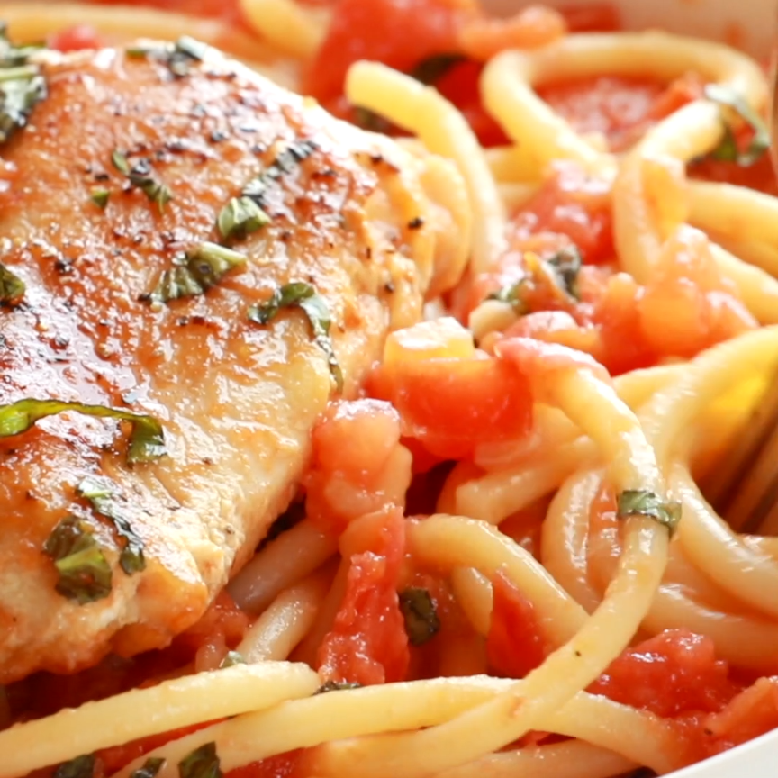 Garlic Basil Chicken – you won’t believe that this easy real food recipe only requires 7 ingredients like basil, garlic, olive oil, tomatoes, and butter. #chicken #garlic #dinner #easy