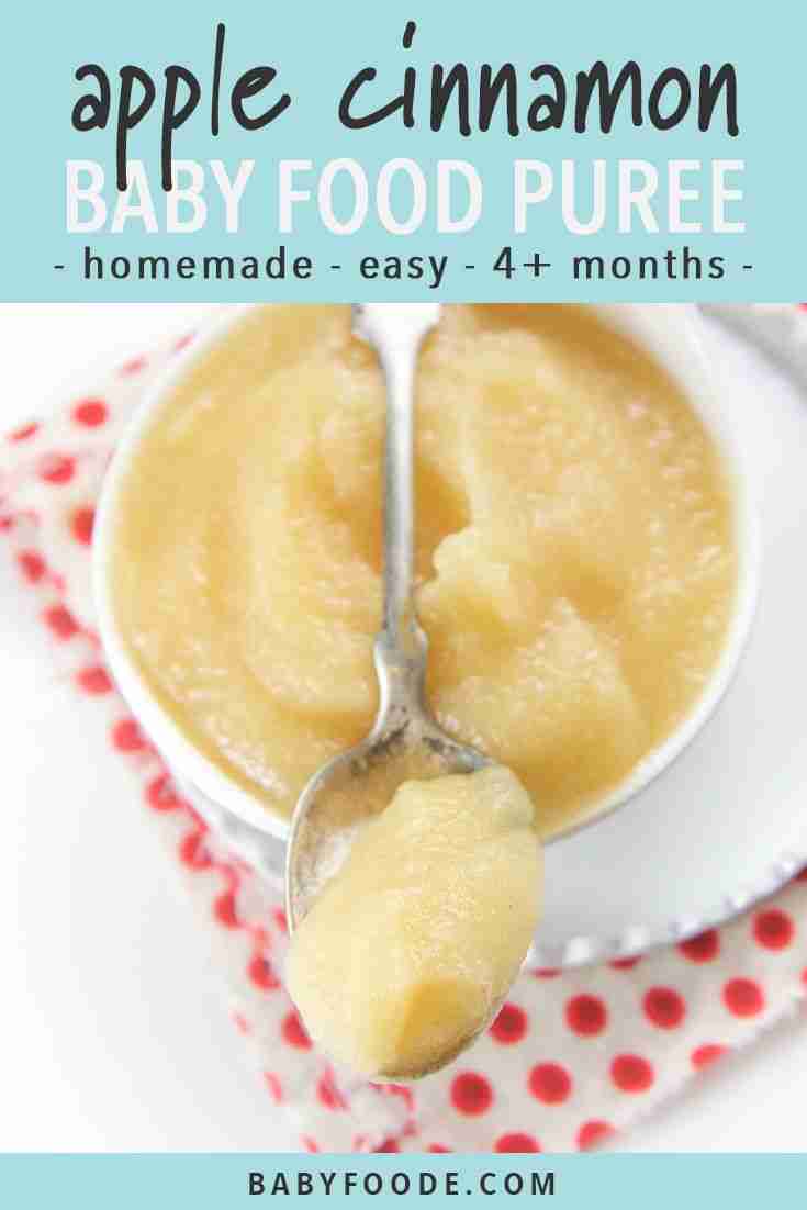 Apple cinnamon puree is the classic starter puree and the perfect first food for babies 4 months and up. Baby will go gaga for this delicious nutrient dense puree. This quick and easy homemade puree is a stage one puree that’s ready in just 15 minutes, and makes a terrific freezer stash. #babyfood #babyfoodrecipes
