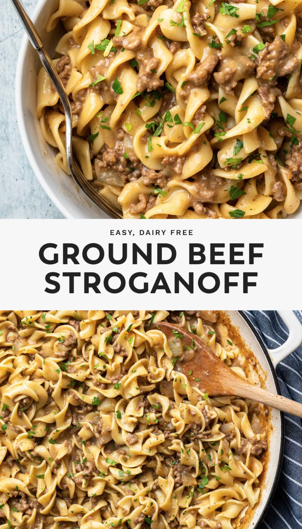 Even if you don’t have steak, you can still enjoy the flavors of this traditional Russian dish. This easy, ground beef stroganoff recipe features a creamy, meaty sauce served over egg noodles, and it comes together in just 30 minutes. Plus, I’ve made it dairy free by swapping the sour cream for a plant-based alternative.