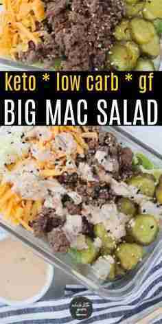 Low Keto Big Mac salad with dressing is healthy and easy! Whether you make it as a meal prep keto lunch or low carb dinner, you won’t miss the original burger.