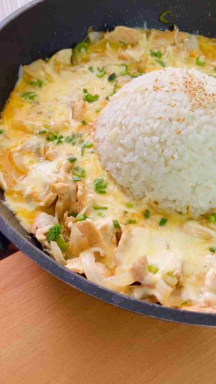 Arroz Fácil y Rápido con Pollo, Queso y Huevo
