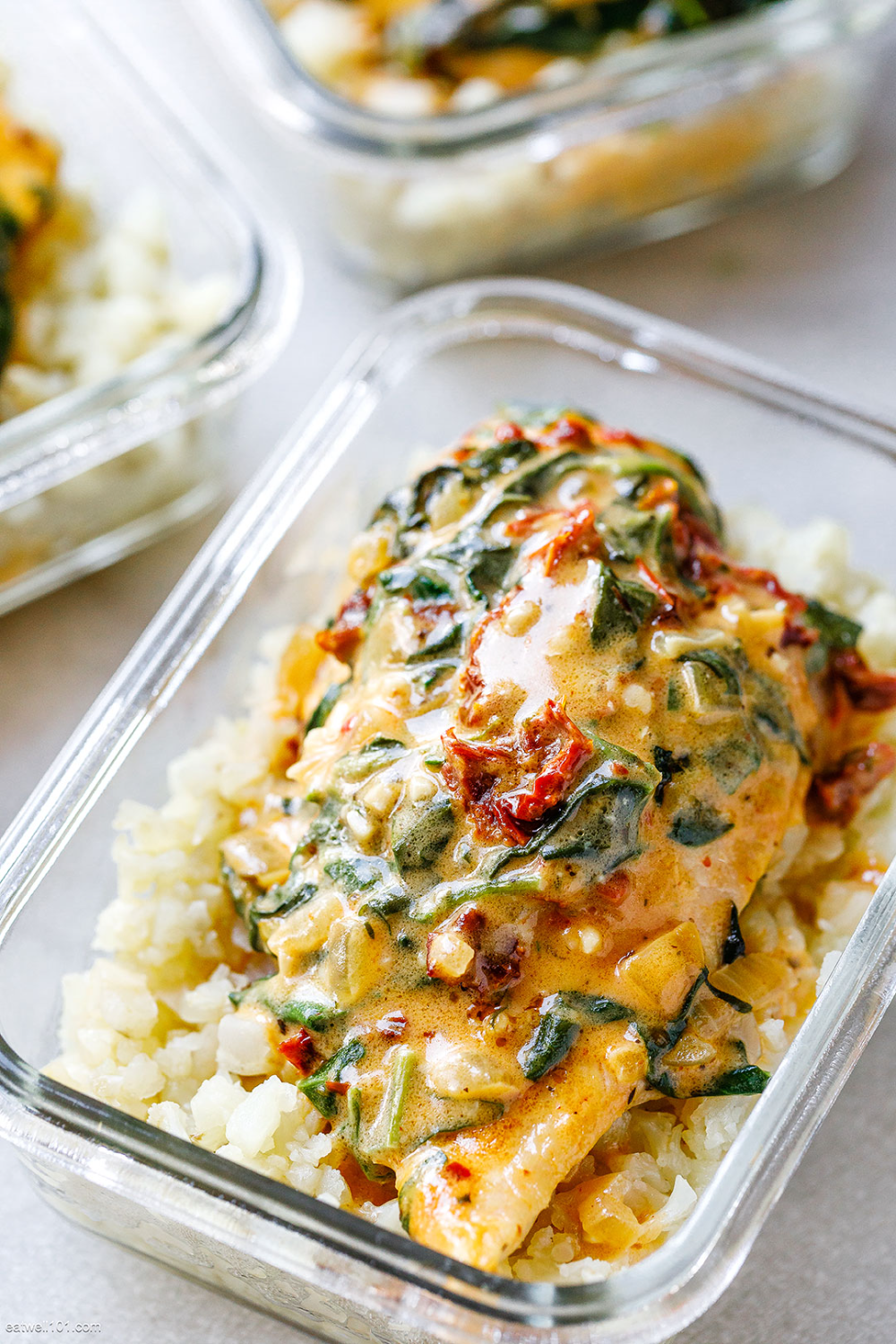 Creamy Tuscan Chicken & Cauliflower Rice Meal Prep