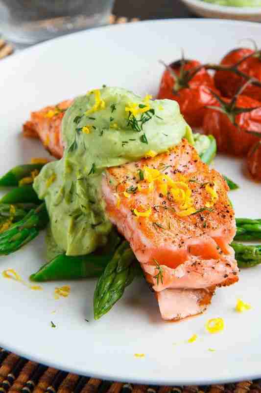 Seared Salmon in Dill Avodaise (Avocado Hollandaise) Sauce