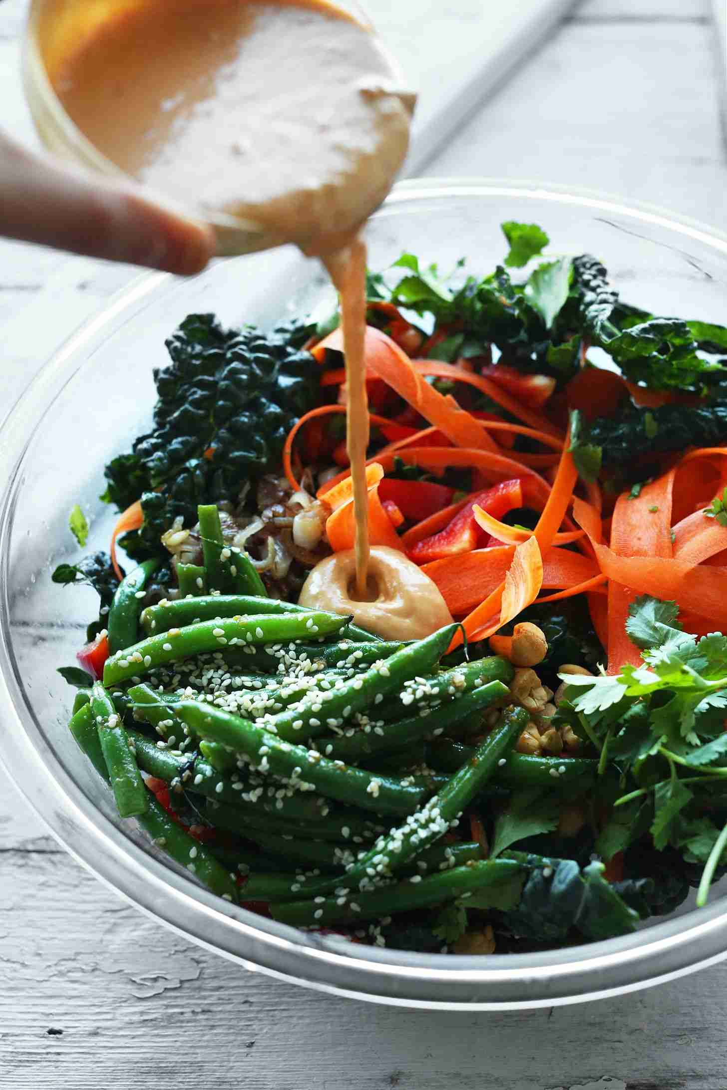 Kale Salad with Gingery Cashew Dressing | Minimalist Baker Recipes Share30-minute GINGERY Thai Kale Salad with TONS of veggies and a Cashew Dressing Share