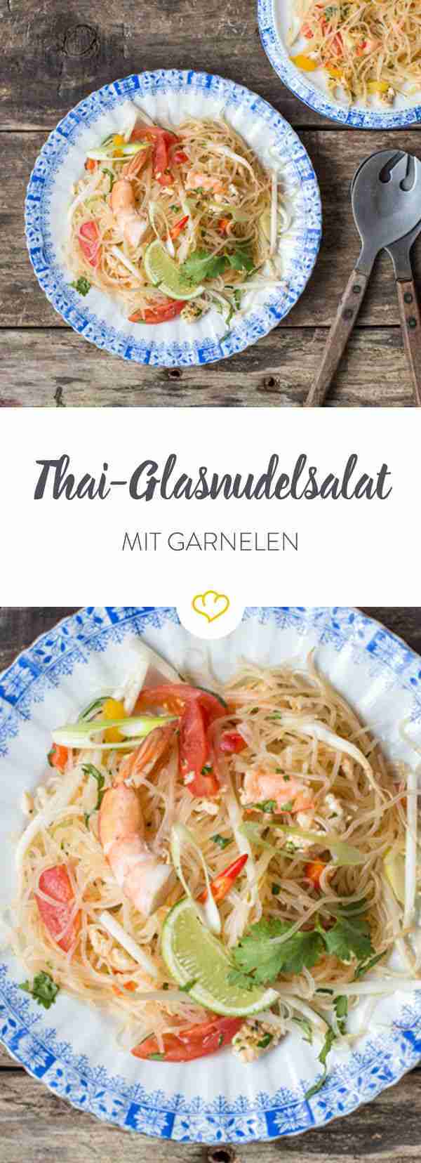 Frisch, leicht und mit zarten Glasnudeln und Garnelenfleisch unwiderstehlich lecker – diesen Glasnudelsalat darfst du dir auf keinen Fall entgehen lassen.