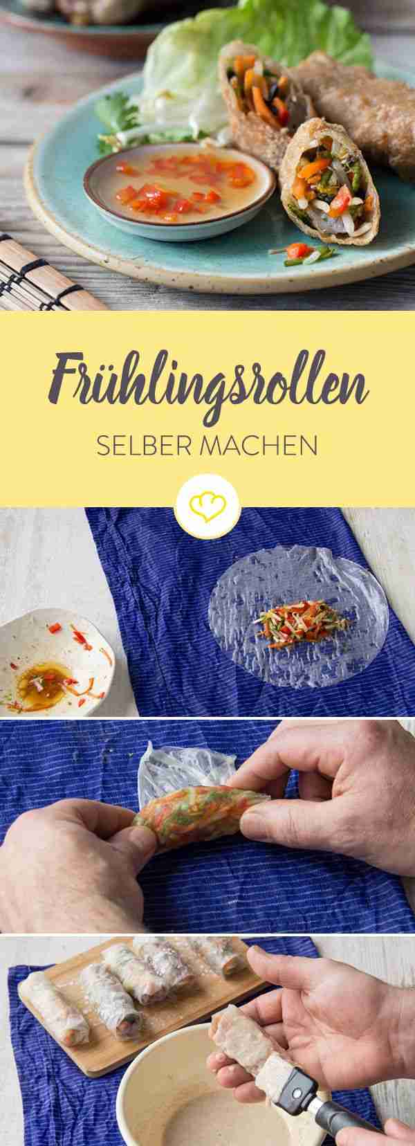 Frühlingsrollen gehören zum chinesischen Neujahrsfest, wie das Bleigießen bei unserem Neujahrswechsel. So machst du die kleinen Rollen ganz einfach selbst.