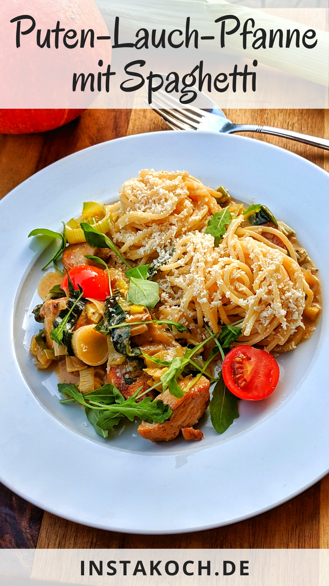 Puten Lauch Pfanne mit Spaghetti in cremiger Parmesan-Sahne-Soße – Ein einfaches Rezept