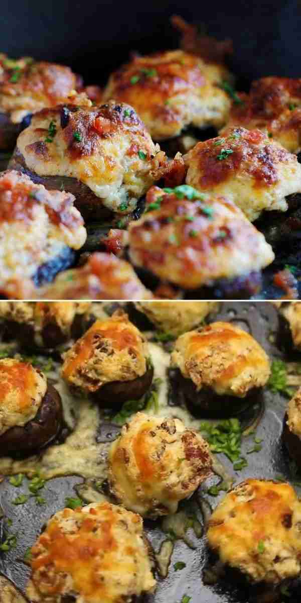Bacon Stuffed Mushrooms are one easy appetizer for a party that starts with baby Bella mushrooms with a creamy bacon mixture topped with parmesan baked to perfection. It’s a great 4th of July party idea!