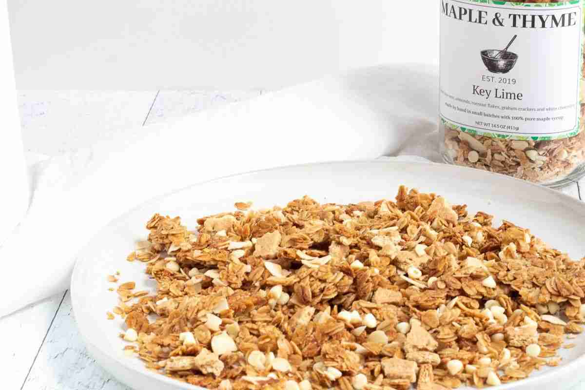 Key Lime is our newest Maple and Thyme Granola flavor! This one packs tons of lime flavor and is filled with sliced almonds, coconut flakes (I know not traditional but yummy), graham crackers and mini white chocolate chips. This granola is delicious with a bowl of yogurt and fresh strawberries. All of our granola is… Read More »