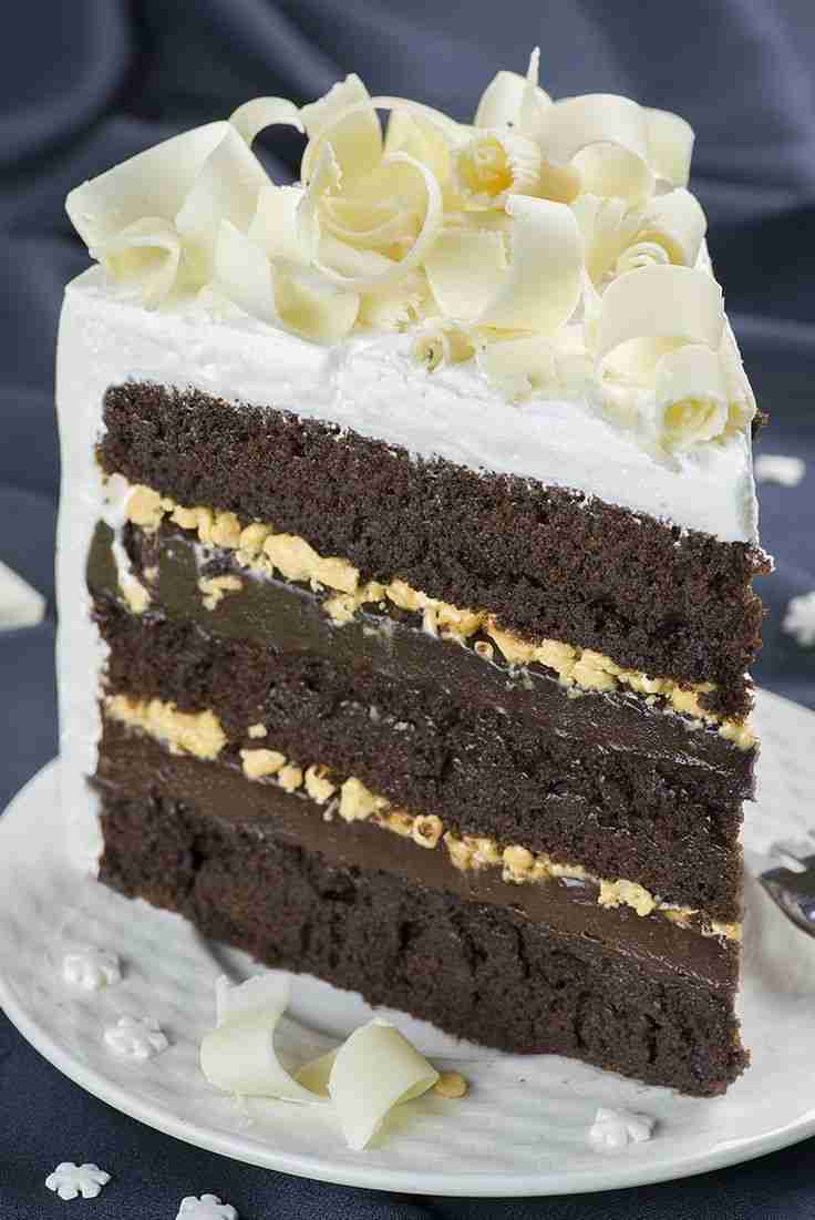 This Peanut Butter Cookie Dough Brownie Layer Cake is one decadent, rich dessert! Layers of peanut butter cookie dough and brownie, with chocolate ganache!