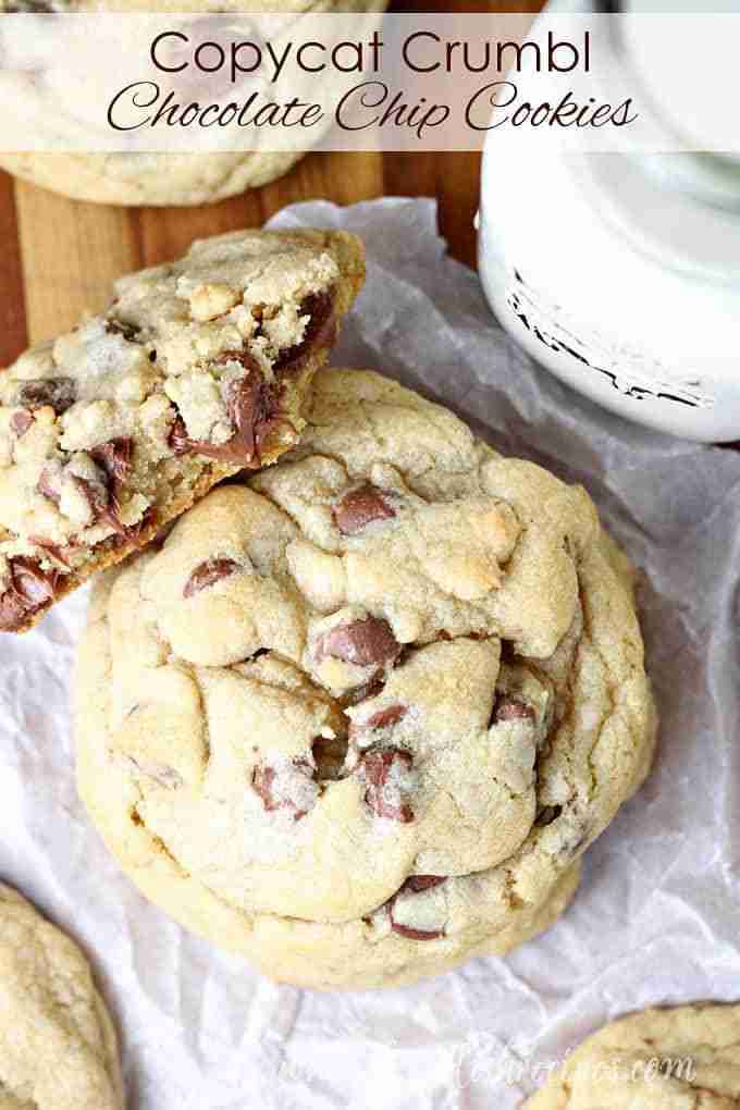 Copycat Crumbl Chocolate Chip Cookies Recipe — These huge, soft cookies are studded with milk chocolate chips and oh so good! Just like the ones from Crumbl bakery. #cookies #desserts #chocolatechip
