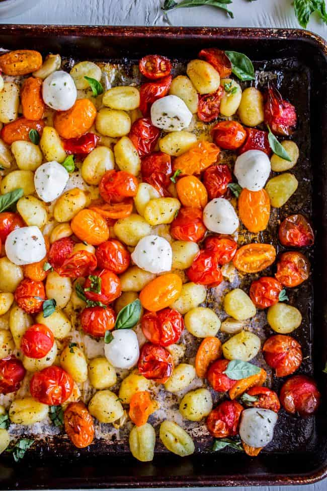 Sheet Pan Gnocchi with Cherry Tomatoes and Mozzarella (30 Minute Dinner) from The Food Charlatan. This Sheet Pan Gnocchi looks deceptively fancy. But it’s basically 4 ingredients (gnocchi, tomatoes, oil, mozzarella) and is a killer 30 minute dinner! Hold on to that last ray of summer! #gnocchi #italian