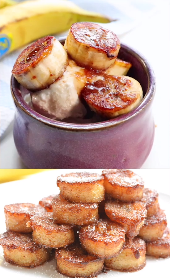 These pan fried cinnamon bananas are so easy to make and taste SO GOOD! They’re amazing (seriously AMAZING) on ice cream or pancakes, or just as a snack. Soft and sweet on the inside and caramelized on the outside. Mmmm… #foodrecipes