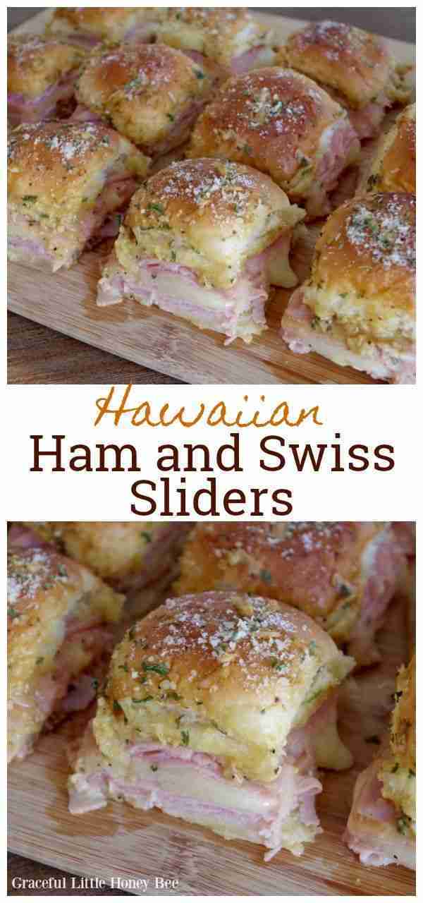 Try these DELICIOUS Hawaiian Ham and Swiss Sliders for a quick and easy meal to serve at your next party. If you need an amazing comfort food recipe for tailgating, holiday parties or events this one is the winner! #sliders #hamandswiss #holidayrecipe