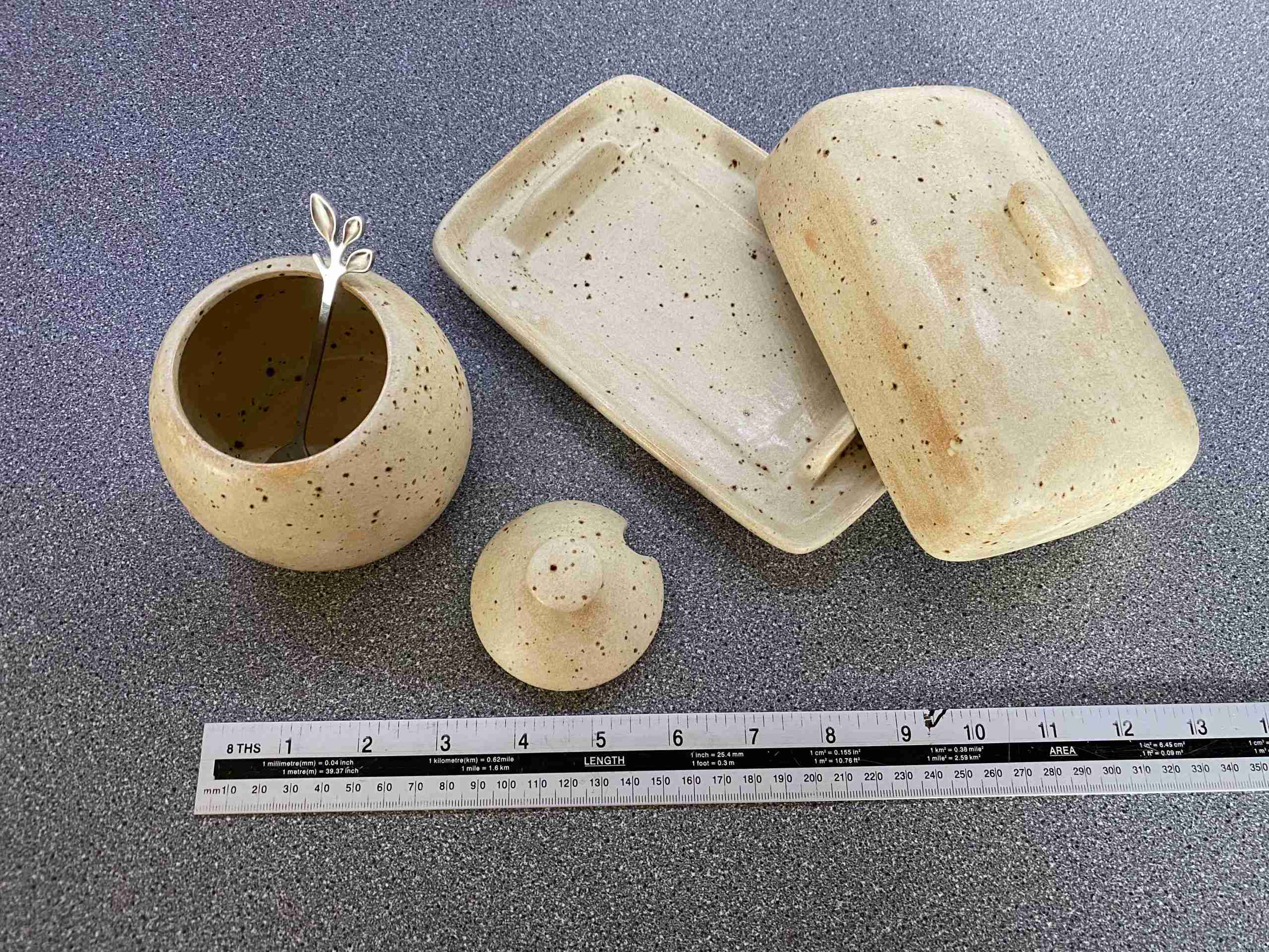 Butter Dish and Sugar Bowl Set Oatmeal Glaze