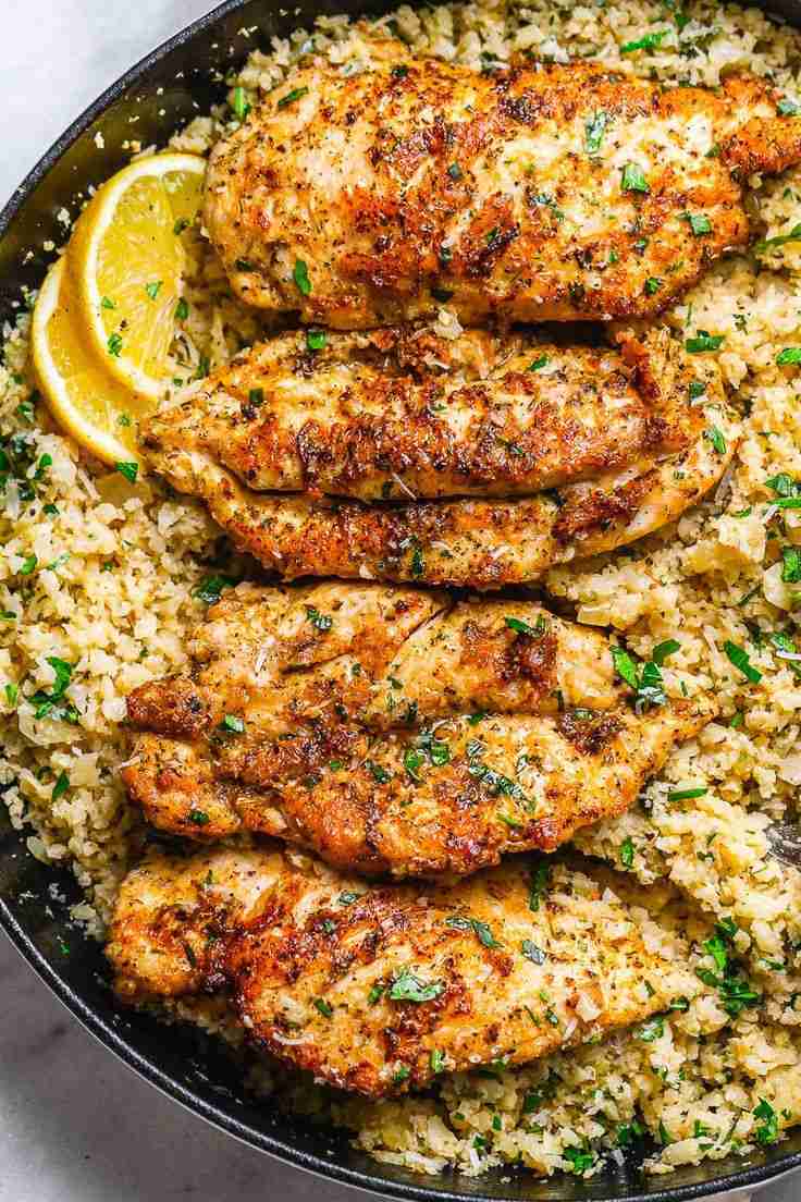 Garlic Butter Chicken with Parmesan Cauliflower Rice – Crispy, soft and SO delis…