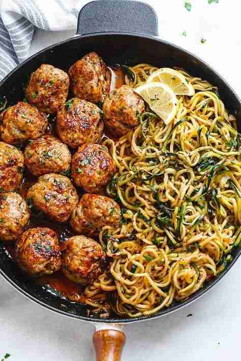 Garlic Butter Turkey Meatballs with Lemon Zucchini Noodles Recipe – Turkey Meatballs Recipe