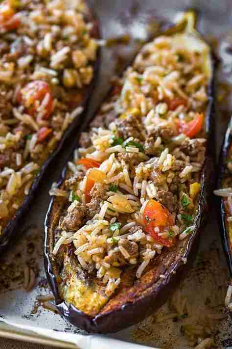 Stuffed Eggplant with Garlic Tahini Sauce | The Cozy Apron