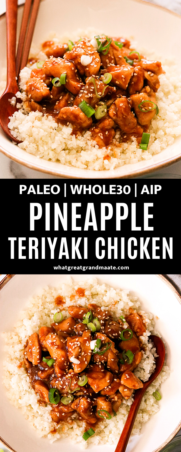This Whole30 pineapple teriyaki chicken recipe is a quick and healthy weeknight meal, only sweetened with pineapple that’s blended in the addicting sauce. It comes together in 15 minutes and you’ll never get takeout again! #whole30 #paleo #glutenfree