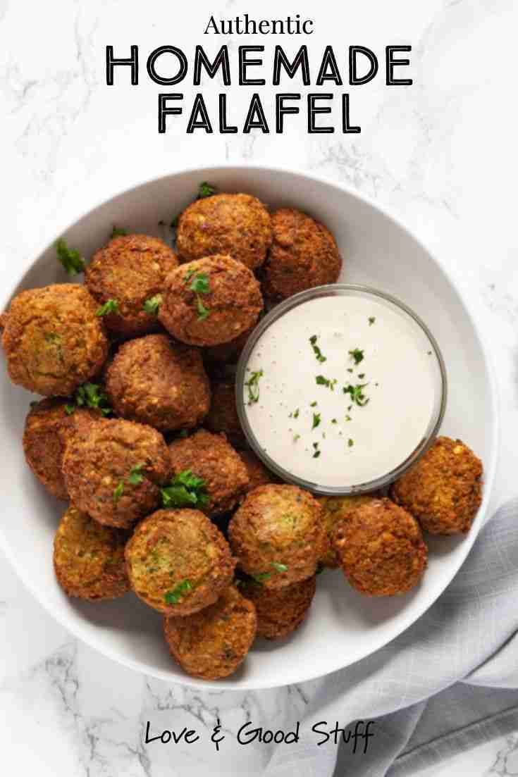 Authentic falafel made at home from from dried chickpeas, herbs and garlic. If you’ve been wondering how to make restaurant quality falafel at home, the secret is in using dried chickpeas and NOT cooked chickpeas from a can. This recipe makes AMAZING falafel – just like they came from a restaurant! #falafel #veganrecipes