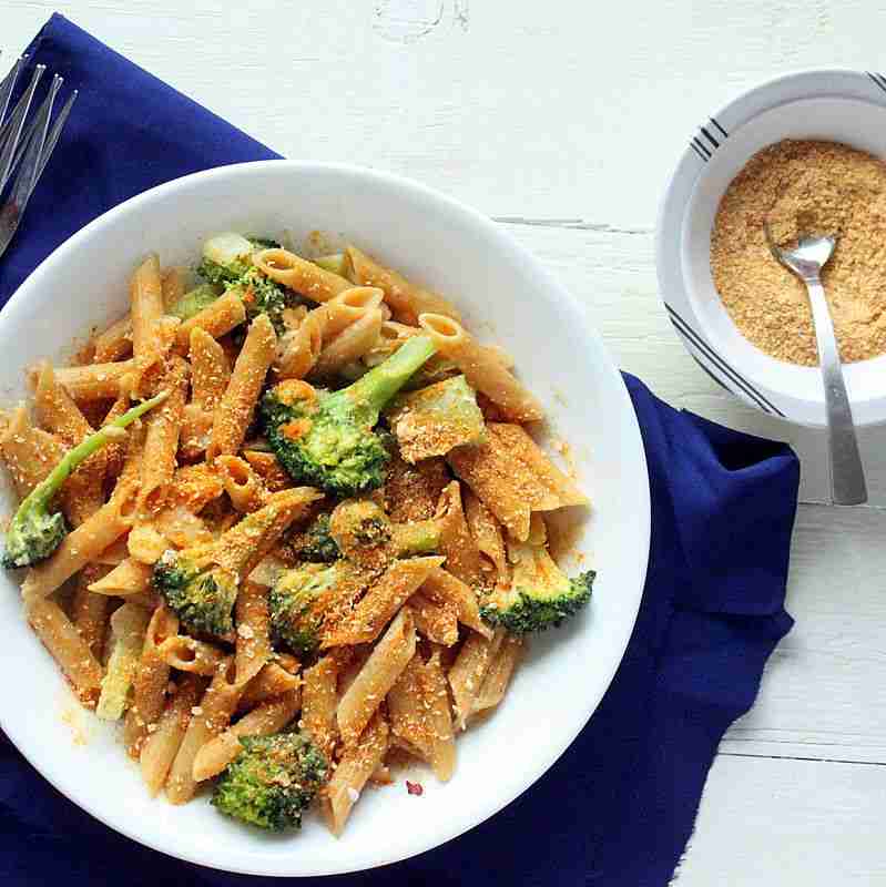 Penne and Broccoli in Doritos cream sauce, topped with Doritos spiced bread crumbs. Home-made Doritos Spice Blend Recipe. Vegan – Vegan Richa