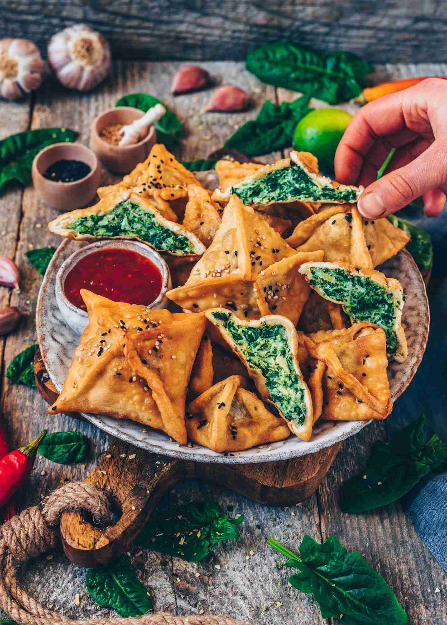 Wan-Tans mit Spinat-Artischocken Füllung | vegan – Bianca Zapatka | Rezepte