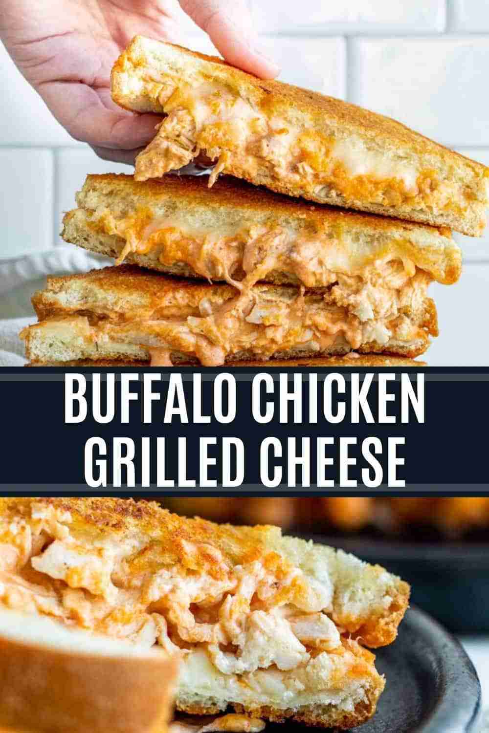 This Buffalo Chicken Grilled Cheese Sandwich is the best easy dinner or lunch recipe. Ready in under 30 minutes and packed with ranch, buffalo sauce, chicken, cheddar cheese and blue cheese for the perfect flavor combo. Easily customizable and addicting comfort food. #buffalochicken #grilledcheese