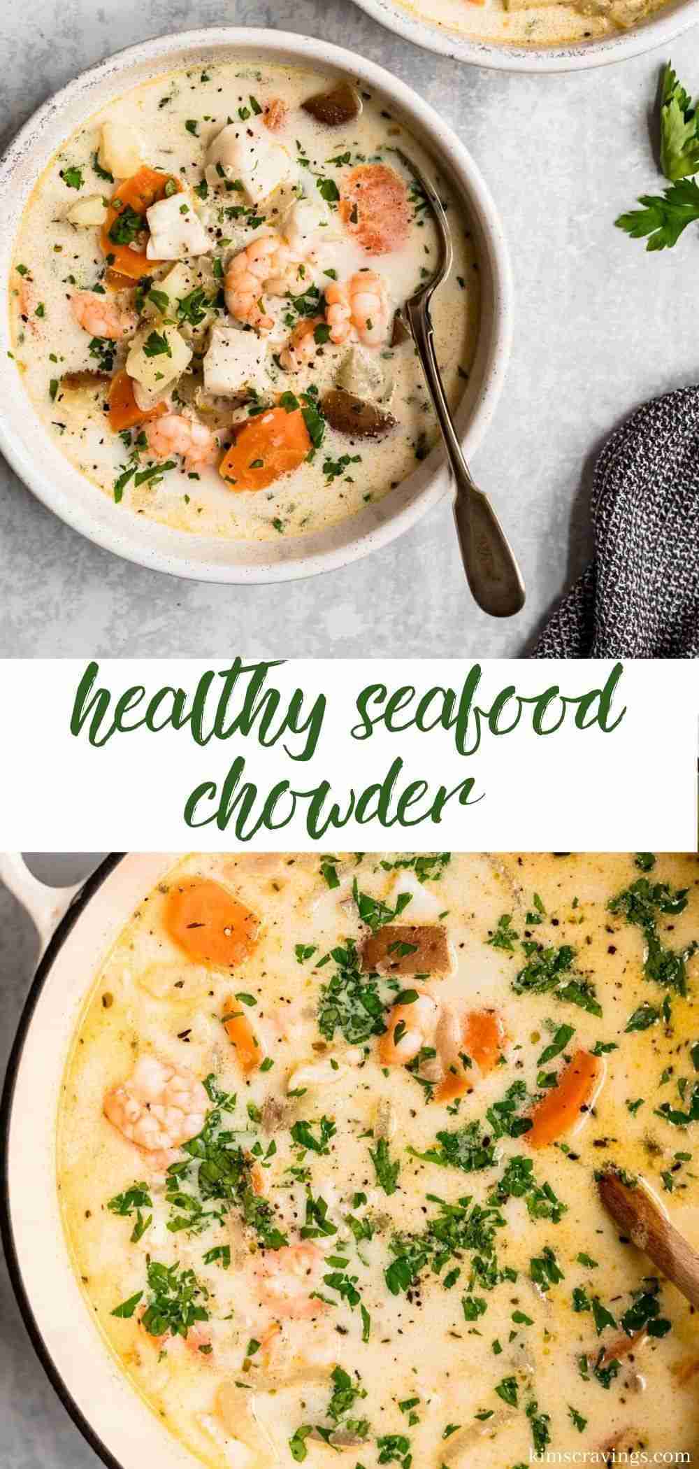 Healthy Seafood Chowder that’s full of seafood and SO delicious!