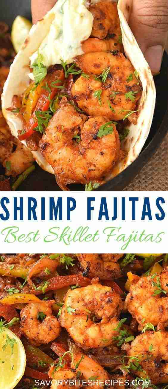 Easy skillet shrimp fajitas recipe is the next Tex-Mex/Mexican food you need to try ,which is not only healthy but can be oven baked or cooked in cast iron pan on stove top,choice is yours. #Savorybitesrecipes #Mexicanfood #texmex