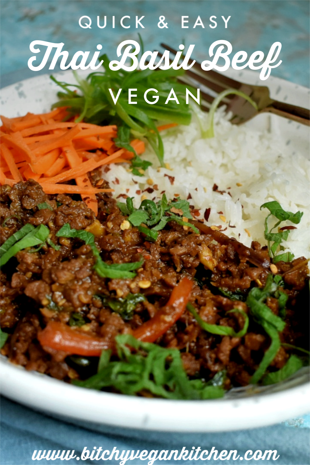 Vegan Thai Basil Beef – This dish is loaded with bold, Thai-inspired flavors. It has that perfect balance of sweet, salty, spicy, savory, and sour along with the fresh, herbaceous flavors of Thai basil. Best of all, it’s ready in less than thirty minutes and accidentally gluten-free!
