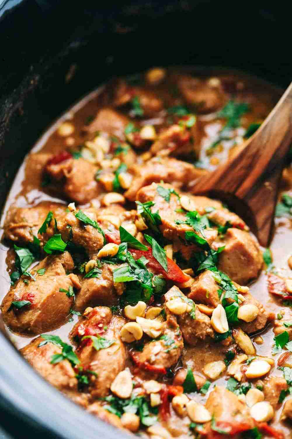 Slow Cooker Thai Peanut Chicken is a creamy, peanut flavor infused chicken that is served over thick, rich noodles. Easy to make in just a couple steps adding all the ingredients together letting the slow cooker do the work for you! Enjoy the smells that will fill your home while cooking during the day.