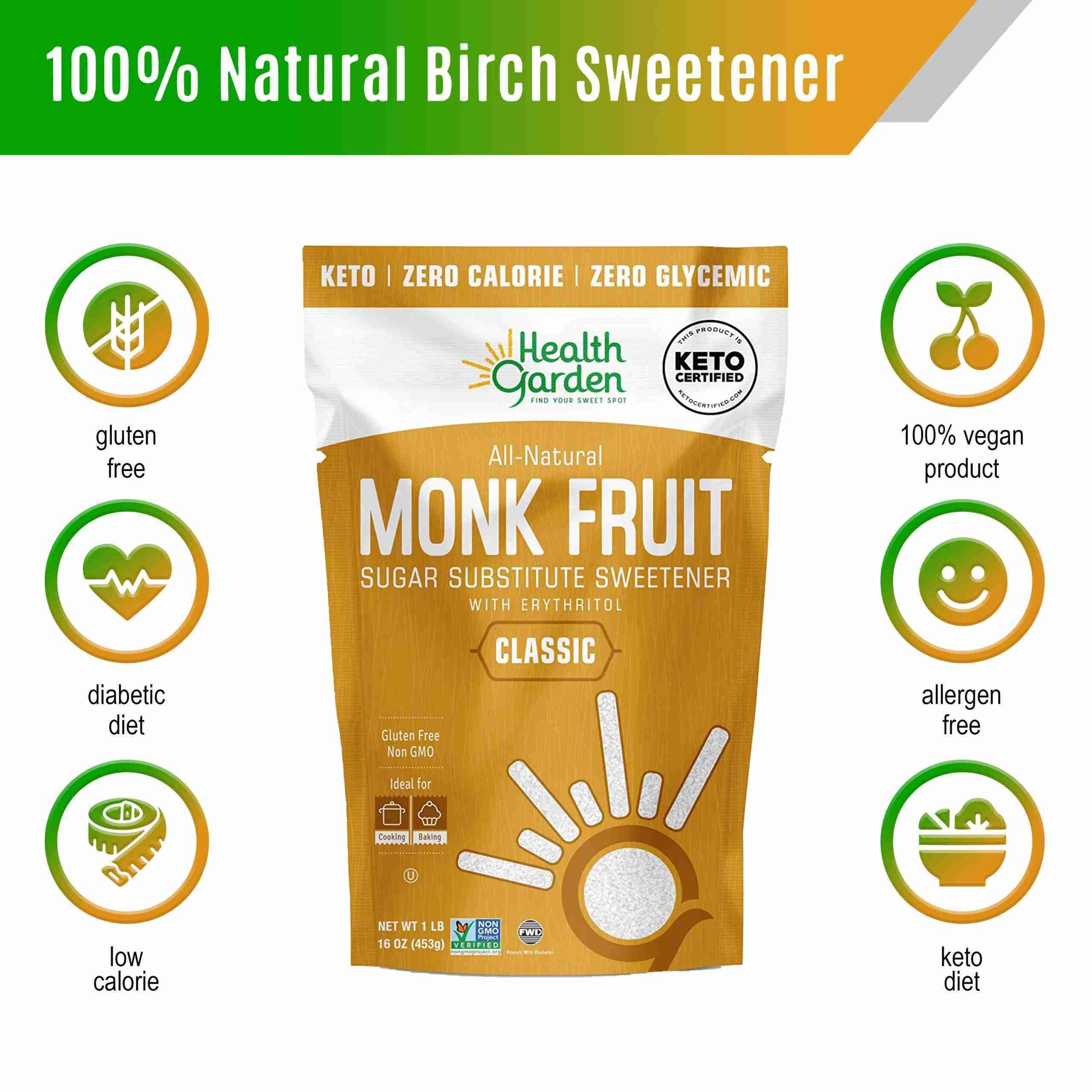 Health Garden Classic Monk Fruit Sweetener, 16 oz