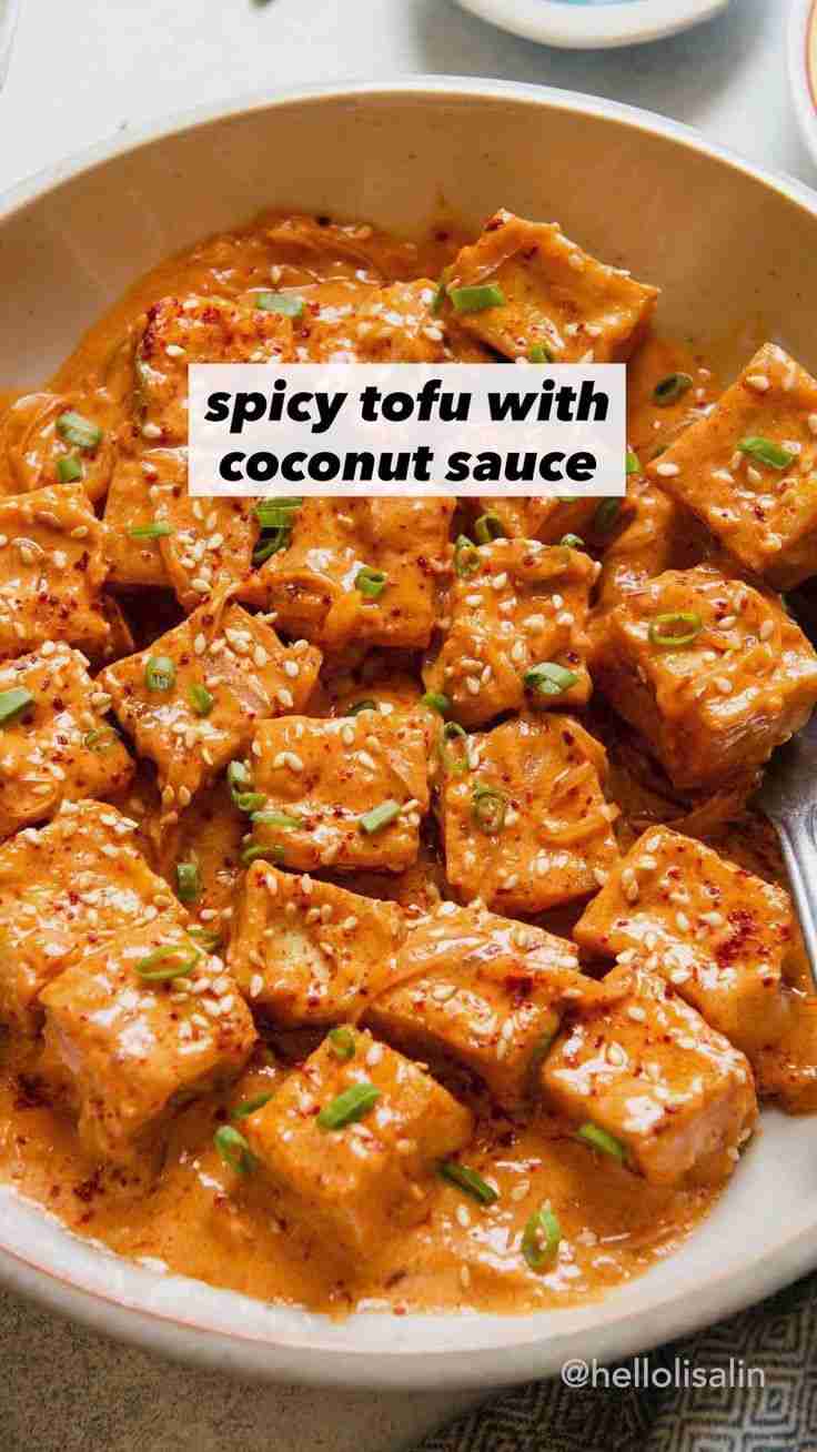 Spicy Tofu with Creamy Coconut Sauce [Video] | Recipe [Video] in 2021 | Vegan recipes, Tofu recipes,
