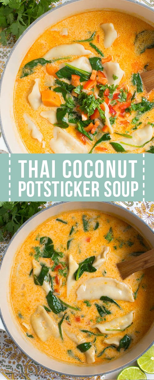 Easy Potsticker Soup with Thai Coconut Curry flavor
